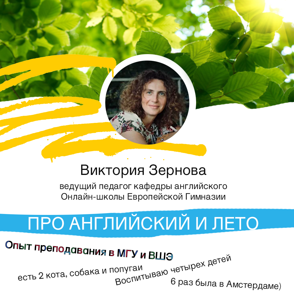 Мы спросили у ведущего учителя английского Онлайн-школы Европейской Гимназии Виктории Зерновой, что она думает про учебу летом.