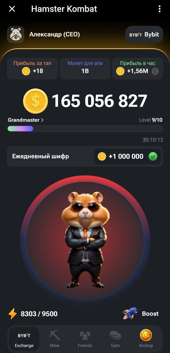 1️⃣ Откройте игру и трижды нажмите на кнопку "Прибыль за тап" сверху слева. Изображение хомяка станет красным.