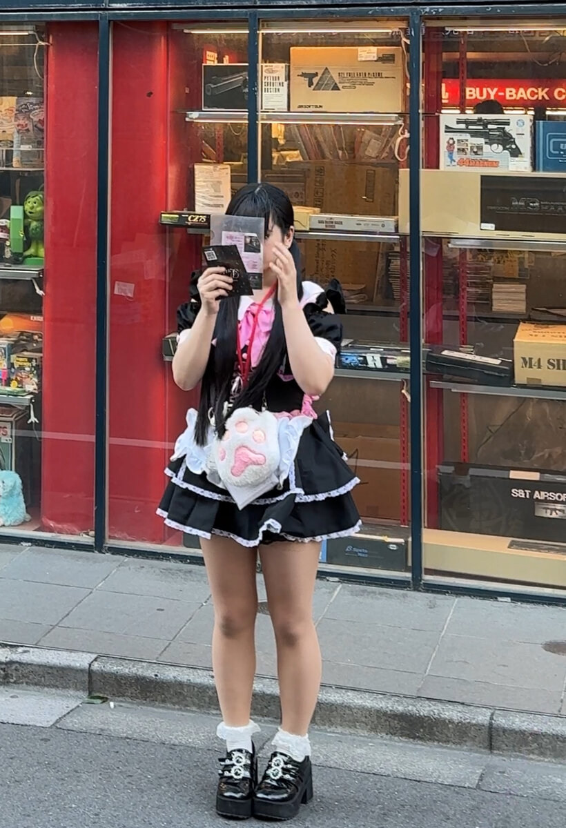 В Японии часто можно увидеть этих странных девушек, стоящих у дороги и прячущих лицо при виде камеры