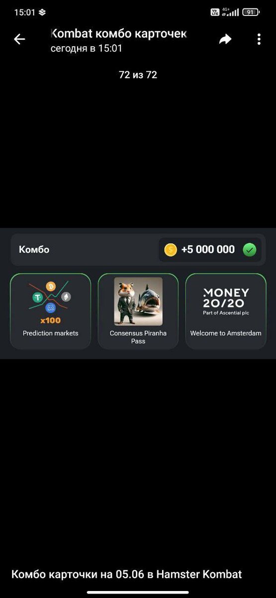 Забирайте 5 000 000 монет, новое комбо в hamster kombat от 05.06.2024!