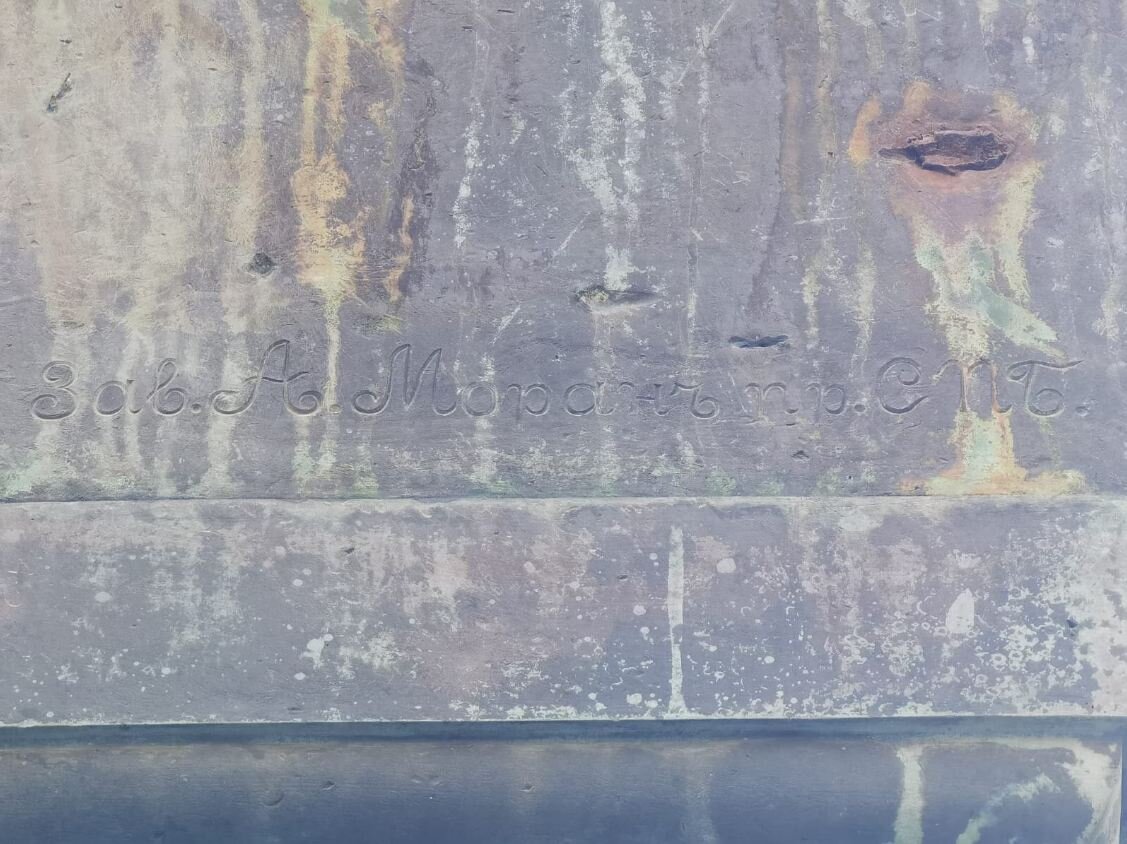 Сзади на плинте надпись: «Отлитъ на заводѣ А. Моранъ».
