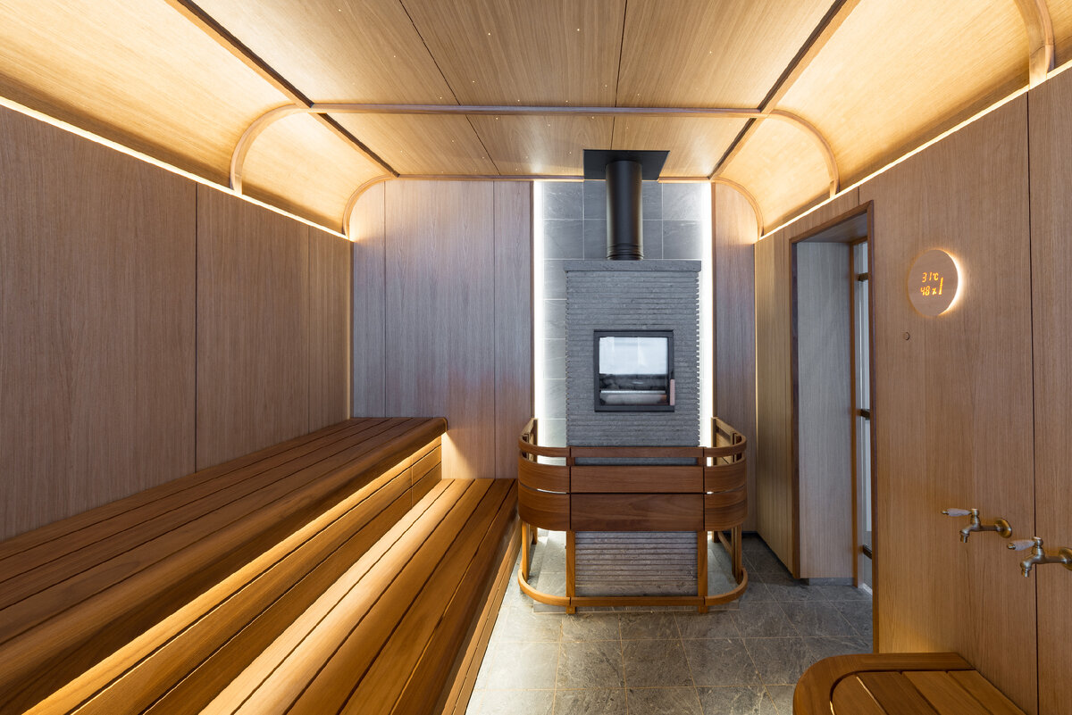 Подготовили для вас новую подборку премиальных проектов русской бани. Смотрите, вдохновляйтесь и пишите в комментариях, какой проект понравился больше. Самый дорогой проект 2023 года из нами реализованных Стильный, функциональный и шикарный одновременно. Реализован он из шпонированных дубовых панелей. На потолке конструкция со столярными элементами из термоабаши. Полки созданы на производстве с помощью столярной вырезки также из термоабаши. Печь в авторской облицовке, созданной специально для этого проекта - для самого мягкого пара. К ней мы сделаем мобильное ограждение, которое можно будет убрать при необходимости. Баня в современном стиле Лаконичный проект парной с электрической печью для бани Sangens из двух модулей на 15 квт в корпусе из черного стекла. Реализована парная полностью из термоольхи: доска - на стенах, рейки - на полках и подспинниках. Печной узел выполнен из плитки SUPERGRES CERAMICHE в стильном черном цвете. Освещение парной - влагостойкая светодиодная подсветк