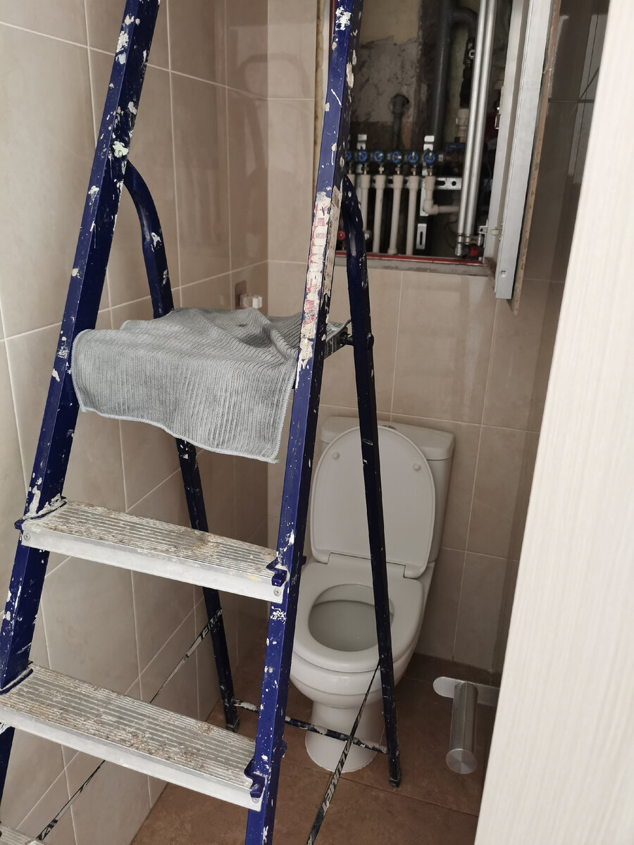 В то утро, конечно, не до фото было. Нам в лагерь и на работу собираться, сын в пижаме, я в пижаме, сантехники по очереди ходят туда-сюда, коты в шоке, пол туалета в тазиках. Хорошо муж из дома работает и руководит этой миграцией людей в рабочих комбинезонах