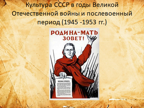 Культура СССР в годы Великой Отечественной войны и послевоенный период (1945 -1953 гг.)