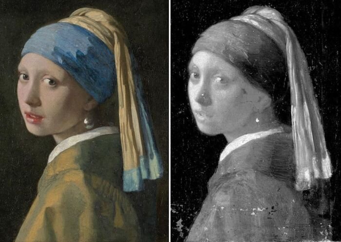 Открытие первое: раньше у девушки были ресницы. Но со временем они исчезли. Это стало известно благодаря макро-рентгеновскому флуоресцентному сканированию и микроскопическому исследованию. Ранее считалось, что отсутствие ресниц указывают на то, что Вермеер рисовал идеализированное лицо, а не реального человека.