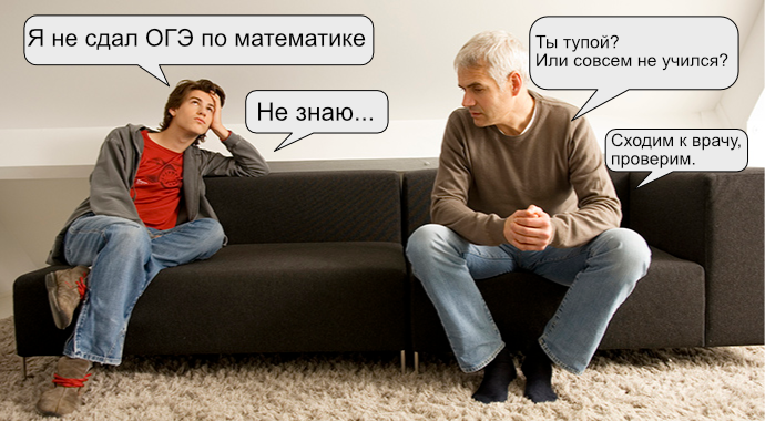 Если ребёнок не может, скажем, по клеточкам посчитать площадь параллелограмма, или не может понять прочитанный текст, тут и к родителям вопрос. Как они столько лет этого не замечали? Как они позволяли ребёнку водить себя за нос и держать за дураков?