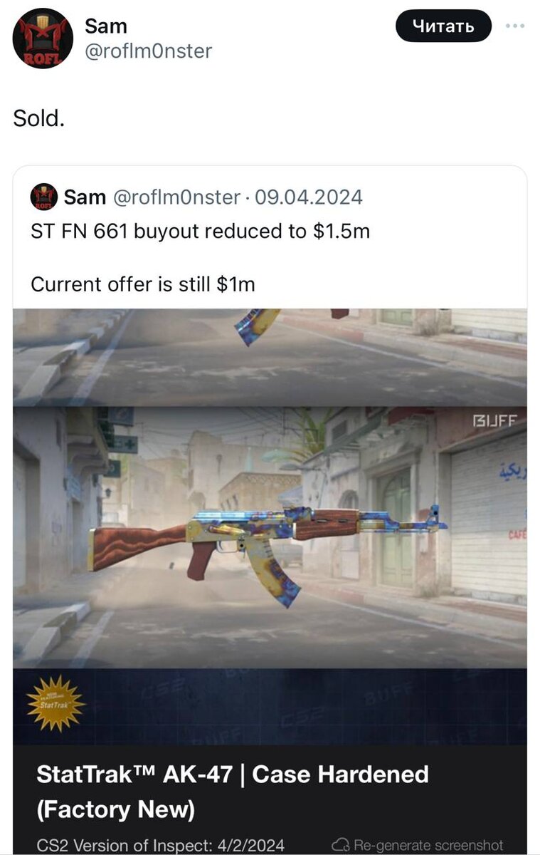 Case Hardened FN 661 для калаша ушёл больше, чем за