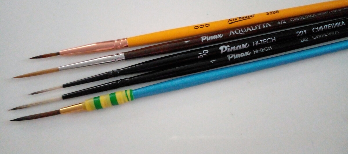 ...она находит себе занятие ))) Когда мне не рисуется, но надо тренировать навык, чтобы рука всегда была в тонусе, тестирую разные кисти, линеры, ручки. Они должны идеально работать и комфортно лежать в руке. С самыми тонкими длинными отводными кистями я не вполне подружилась: Ими сложно делать декоративную обводку. Хотя я заставляю себя тренироваться. Специально набрасываю цветные абстракции. Этими шлепперами, так, кажется, зовут еще кисти-лайнеры, сложно сделать длинную ровную фигурную линию. Особенно если кисть не ахти. Прямую или слегка изогнутую типа провода - легко. Но для этого держать в арсенале отдельную кисть, или несколько?.. Подпись ими тоже выходит уродская, набивай руку-не набивай: Намного проще выполнять тонкую работу обычными круглыми кистями. Синтетикой, колонком, мангустом, имитацией. Тонкий острый кончик - обязательное условие. И упругость. Иногда подходит хорошо собранная белка. Но это редкость. Вот мои фавориты: Китайская каллиграфическая кисть из непонятного зверя