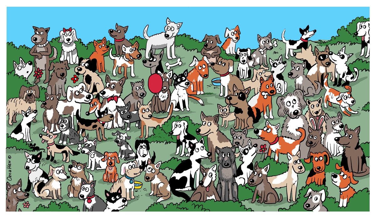 Тест на внимание! Кошка, мышка, лиса и заяц спрятались среди собак. Развивающее задание.