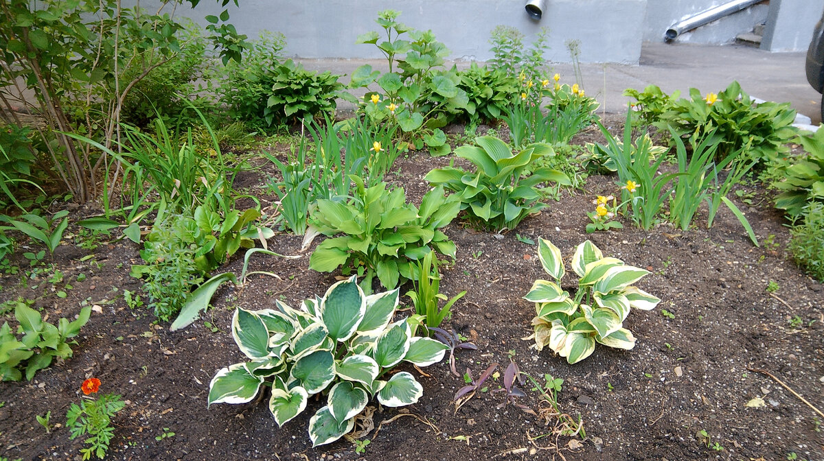 В новом сезоне я продолжаю благоустраивать цветник, находящийся около подъезда нашей городской квартиры. Напомню, что это новый для меня проект, который возник в сентябре 2023 года. С тех пор прошло девять месяцев. Чего только не происходило: беспрецендентно сухой и жаркий сентябрь, бесснежные морозы начала декабря, сменившиеся обильными снегопадами в январе-феврале и, как следствие, весьма варварскими действиями коммунальщиков по уборке снега у нас во дворе, когда снегоуборочная техника ездила прямо по цветнику, а горы грязного спрессованного снега достигали 2-2,5 метров в высоту. Из-за чередующихся периодов оттепелей и морозов на земле образовывалась корка льда, под которой вымерзало все живое. В качестве вишенки на торте весной после таяния снега посреди цветника я обнаружила весьма неожиданный "подарок": Остается только гадать, откуда взялся этот бетонный блок. Справедливости ради, отмечу, что дворники убрали его в течение нескольких дней после того, как он полностью вытаял. Они же