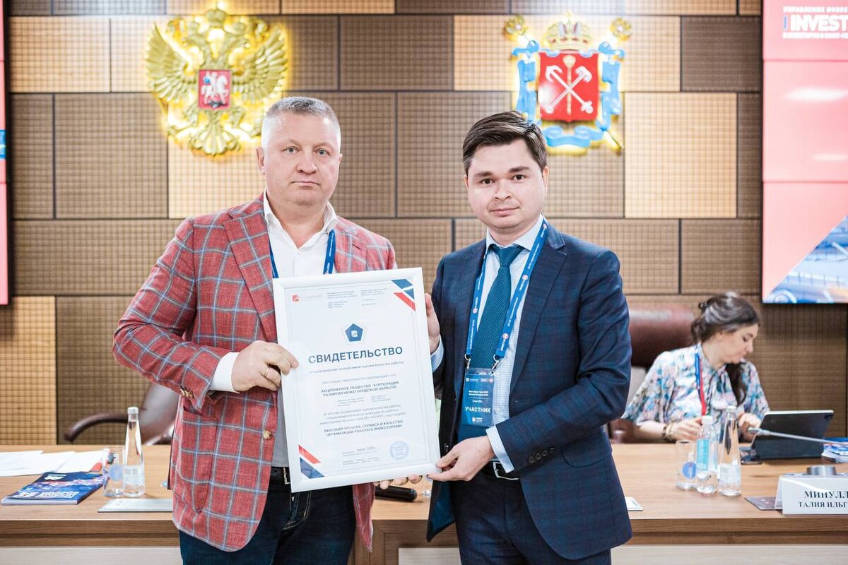 Корпорация развития Нижегородской области получила свидетельство о прохождении независимой оценки качества работы от Национальной ассоциации агентств инвестиций и развития. «Нижегородская область ведет планомерную работу по улучшению условий для инвесторов, и Корпорация развития является одним из ключевых участников этого процесса. Организация помогает привлекать в регион новые средства, создать дополнительные рабочие места, не только улучшая инвестиционный климат, но и, в конечном счете, повышая уровень жизни нижегородцев», – отметил замгубернатора Нижегородской области Андрей Саносян. По более чем 80 пунктам Корпорация развития Нижегородской области получила высокие баллы, суммарно набрав 95%. Это лучший результат в стране среди агентств развития, прошедших независимую оценку. Также Национальной ассоциацией были проведены контрольные закупки, оценивающие оперативность и эффективность отработки Корпорацией развития запросов инвесторов. «Мы непрерывно работаем над повышением уровня вза