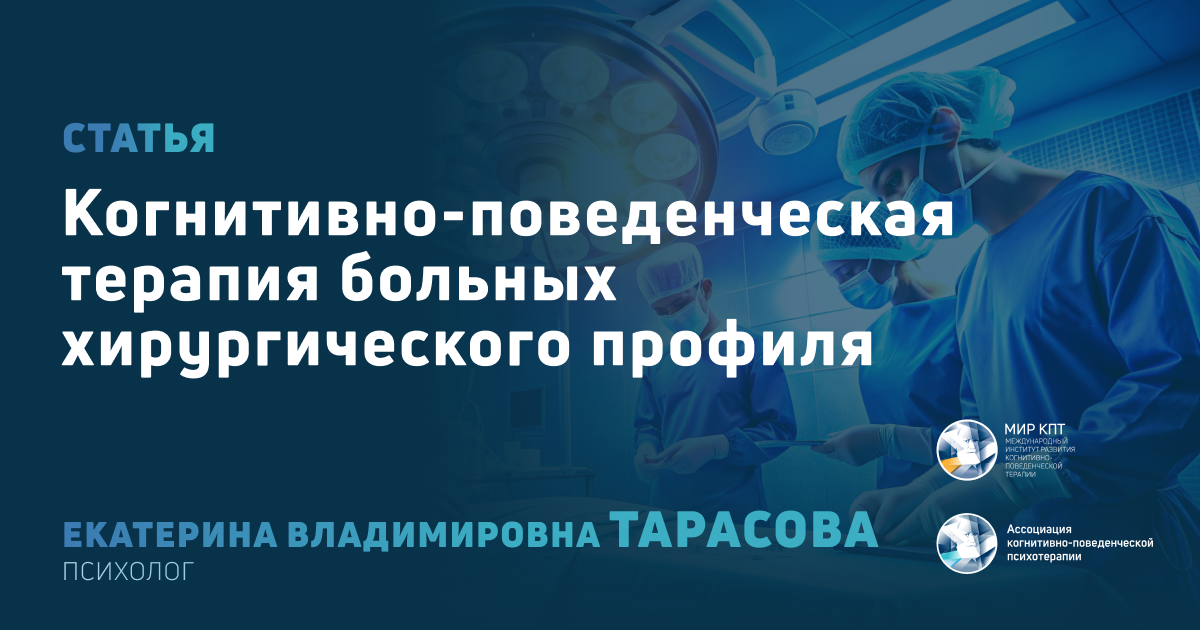 Таким образом, КПТ может являться психотерапией первого выбора в хирургии, поскольку позволяет пациентам с помощью определенных техник лучше совладать как с болевым синдромом, так и с напряженным психоэмоциональным состоянием перед операцией и после операционного периода. КПТ — это психотерапевтический метод, позволяющий сделать лечение и реабилитацию пациентов хирургического профиля более эффективными. Больные обучаются навыкам регулирования своего психологического состояния, они легче переносят медицинские манипуляции, у них сохраняется комплаентность, что позитивно влияет на качество жизни.