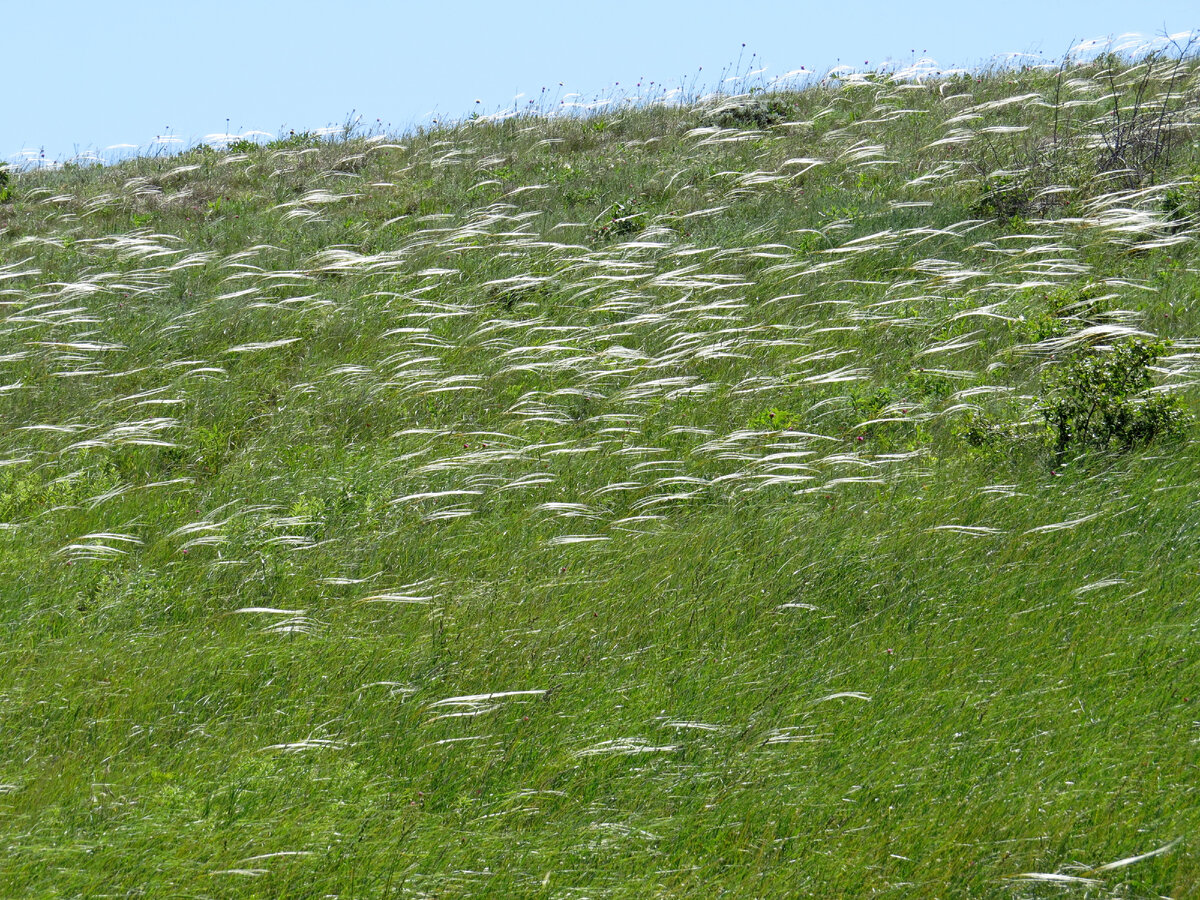 Начало здесь - Часть 1. Между Янышарами. Часть 2. Желтые реки. Часть 3. Маки Тихой бухты. Часть 4. Кастилия-Ла-Манча или Дикий Запад? Часть 5. Дельфиниум и море. Здесь много натоптанных тропинок. Выбирай любую! А можно натоптать и свою. Но, зачем? За спиной осталась Тихая бухта. Теперь кажется, что море далеко от нас. Но, мы то знаем, что оно прямо вот за этими холмами. Нам туда. Как же все-таки неповторима весенняя красота! На середине подъема решили немного посидеть. Увидели, что весь склон в цветах. Начинают распускаться васильки. Рядочками, тянутся к небу цветочки гвоздики. А какой сказочный вид открылся! Вдруг впереди на тропе появился черная змейка. За нами бегут! Не, они так гуляют! И из-за спины еще толпа начала спускаться! Откуда их столько тут. Да ведь это воскресение и стоит отличная погода. Народ соскучился по прогулкам. Мы всех пропустили, в обе стороны. Нам не зачем бегать с ними перегонки. У нас сегодня медленное созерцание красот. И ведь есть, на что смотреть!