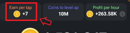 1. 💣Запустите игру и трижды нажмите на кнопку "Прибыль за тап (Earn per tap)" в верхнем левом углу экрана.