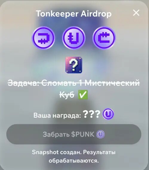 Сегодня ночью завершилась первая стадия airdropa в приложении Cubes от NOTPunks. Многие ожидали, что дроп токенов произойдет сразу после завершения, но кнопка "забрать $PUNK" неактивна. Вместо этого появилась надпись "Snapshot создан, результаты обрабатываются". Давайте разберемся, что это значит и как получить свои деньги. Что такое Snapshot? Snapshot — это зафиксированное состояние данных на определенный момент времени. В контексте блокчейна и криптовалют, это означает, что команда проекта зафиксировала текущее состояние аккаунтов и количества активов на них. Что происходит сейчас? Надпись о созданном снэпшоте означает, что команда проекта зафиксировала количество мистических кубов у каждого пользователя на момент окончания дропа. Сейчас команда работает над обновлением бота, которое покажет итоговую сумму в монетках и активирует кнопку вывода, позволяя вам вывести монетки на свой кошелек. Раздача PUNK Токен PUNK уже давно прошел стадию листинга и торгуется на различных децентрализов
