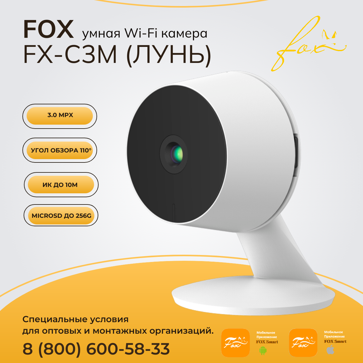 Одной из таких камер является FOX FX-C3M (Лунь) — умная WIFI камера, которая обладает рядом уникальных функций и характеристик. Основные особенности этой камеры и её преимущества перед другими моделями. ✔️ Разрешение видео 3 Мп (2304 x1296) — обеспечивает чёткое и детализированное изображение. ✔️ Угол обзора по горизонтали 110°/ по вертикали 55°— позволяет охватить большую площадь без потери качества. ✔️ Ночное видение ИК-подсветка до 10 метров — даёт возможность видеть в темноте. ✔️ Двусторонняя аудиосвязь встроенный микрофон и динамик — позволяют общаться с людьми, находящимися рядом с камерой. ✔️ Интеллектуальные функции детектор движения, обнаружение звука — обеспечивают автоматическое срабатывание при определённых событиях. ✔️ Поддержка карт памяти до 256Gb — позволяет сохранять записи для последующег