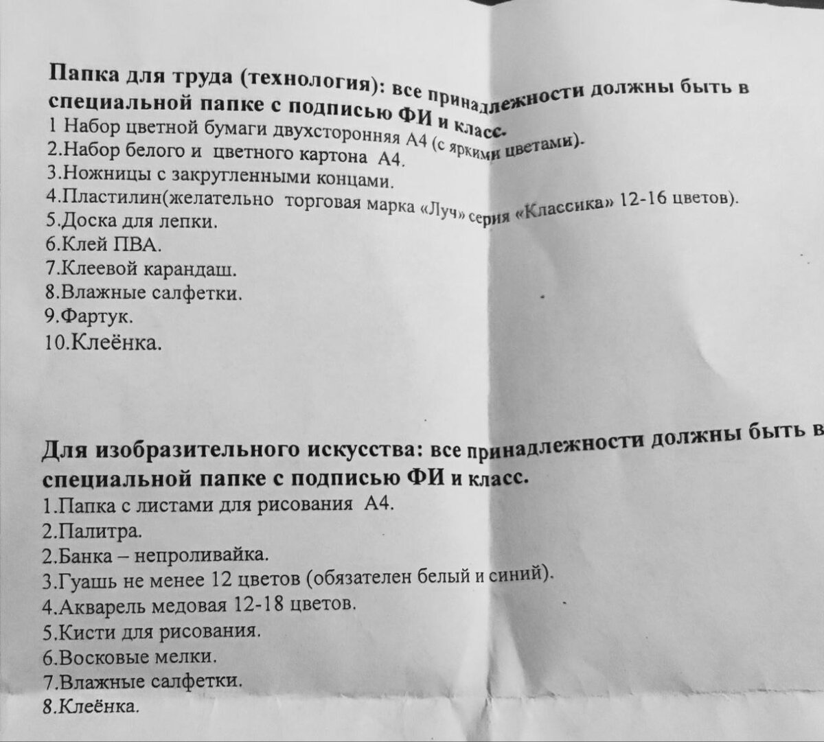 Выдали список необходимых канцелярских принадлежностей. Список внушительный оказался: