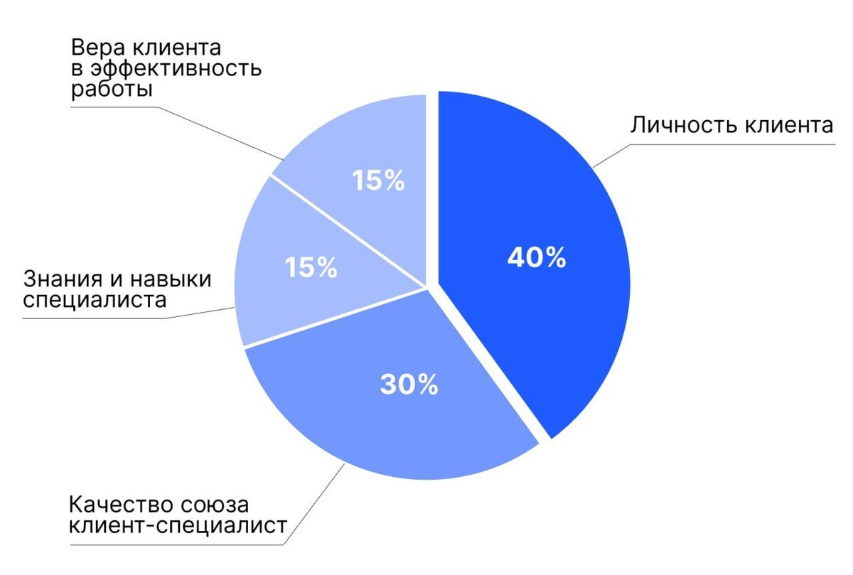 Еще она делится со мной интересным контентом. Вот, например, причины успеха/неуспеха при взаимодействии помогающего специалиста с клиентом (на основе большого исследования):