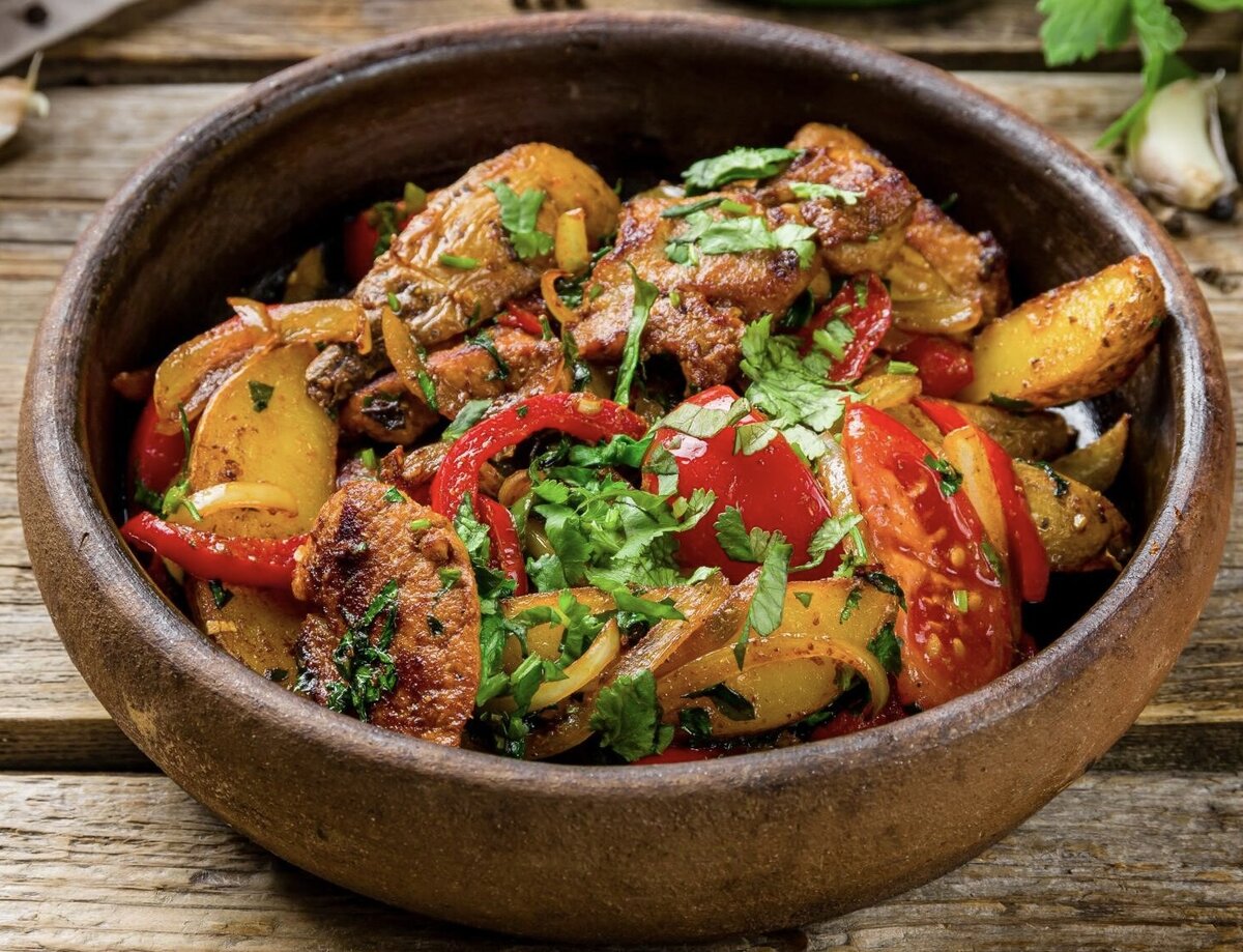 Попробуйте это ароматное грузинское блюдо из жареной курицы и картофеля.