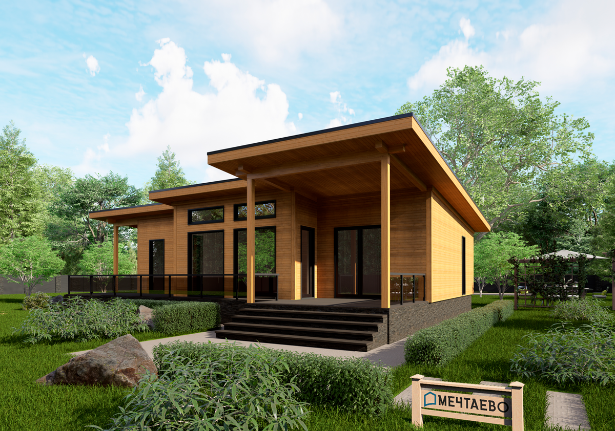 Новинка в нашем каталоге каркасных домов - проект Довиль! Он выделяется на фоне других домов, в первую очередь, своим экстерьером. Чего только стоит ступенчатая кровля, которая придает проекту визуальный объем при довольно скромной площади! Наружная отделка Довиля выполнена из красивого скошенного планкена, на фоне которого ярко выделяются другие элементы - графитовый цоколь, панорамное остекление и сложная форма фасадов. Дом выполнен в современном стиле, поэтому он точно понравится активным семьям, которые ищут не просто жилье, а настоящее украшение для своего участка. И красив Довиль не только снаружи, но и внутри! Параметры проекта: Площадь - 122,2 кв.м. Габариты - 13*12 м. Большую часть Довиля занимает кухня-гостиная с панорамным выходом на террасу. Она опоясывает половину дома по периметру, увеличивая площадь комнаты практически в два раза. Также в проекте учтены три спальни, причем одна из них отсечена от общих зон с помощью тамбура. Отдельным бонусом в Довиле стала своя спа-зона