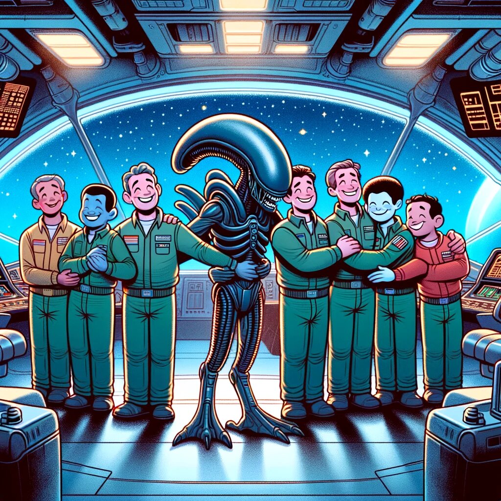 День 1: Пробуждение Я проснулся от долгого сна, ощущая необычные вибрации и звуки вокруг. Мой кокон был темен и холоден, но я чувствовал, что вокруг меня происходят странные вещи. Незнакомые запахи и звуки вторгались в мое сознание, наполняя меня тревогой. Я был мал и уязвим, беззащитен перед этим новым миром. Кто-то приближался. Я чувствовал их шаги, их дыхание. Страх и любопытство боролись во мне, но инстинкты взяли верх. Когда одно из существ приблизилось слишком близко, я вырвался из своего яйца и прикрепился к его лицу. Я не хотел причинять ему боль, но другого выбора не было. Я чувствовал его панику и страх, но это был мой способ защититься, мой способ выжить. День 2: Пробуждение в теле чужака Когда мое тело завершило трансформацию внутри этого существа, я прорвался наружу. Его крики были громкими и пронизывающими. Я чувствовал его агонию, и это наполняло меня горечью. Я не хотел убивать, но это было необходимо для моего выживания. Его смерть стала моим рождением в новом мире. Я