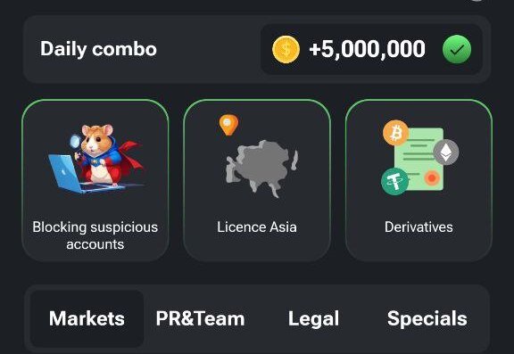 Комбо карты на 6-7 июня! 1. License Asia в разделе Legal. 2. Derivatives в разделе Markets. 3. Blocking suspicious accounts в разделе PR&Team. Так же, на моём канеле опубликован ежедневный шифр daily cipher на 6-7 июня! Подписывайтесь на канал, впереди много интересного! Комбо-карты и шифры каждый день