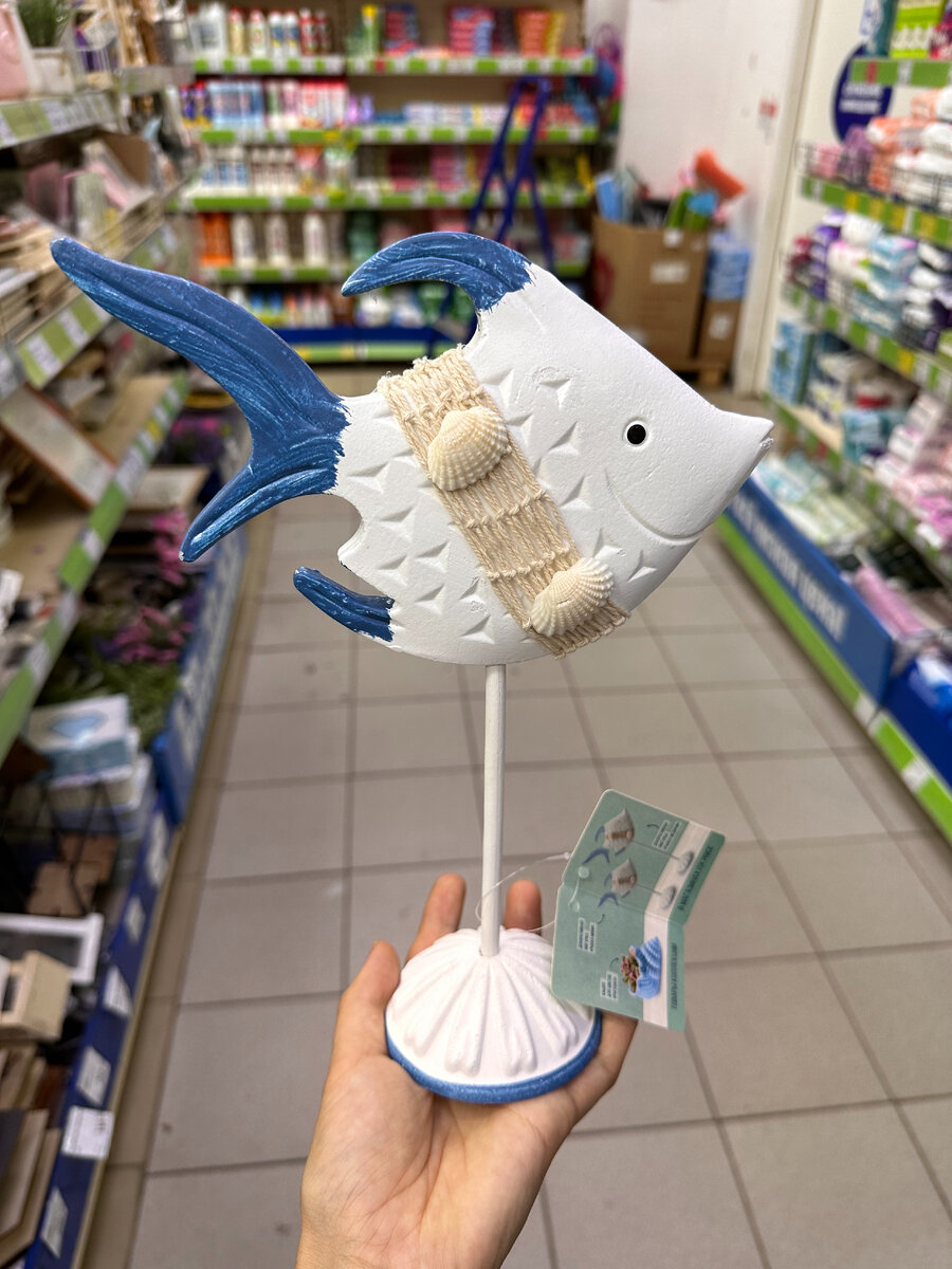 А теперь к делу. Эти рыбки очаровательны, и да, они бесполезны с точки зрения практичности, но при этом создают атмосферу. Морская тема, бело-синие оттенки, безусловно расслабляют. Хотя почему бесполезные? Можно на них украшение повесить, например, в спальне. Цена -249 руб.