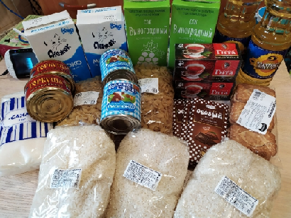 Вариант набора: банка сгущенки, банка тушенки (по две, если повезет); 1(2) кг пшена, 1(2) кг перловки; еще что-нибудь более полезное (например, 1(2) кг сахара) или 2 пачки маргарина.