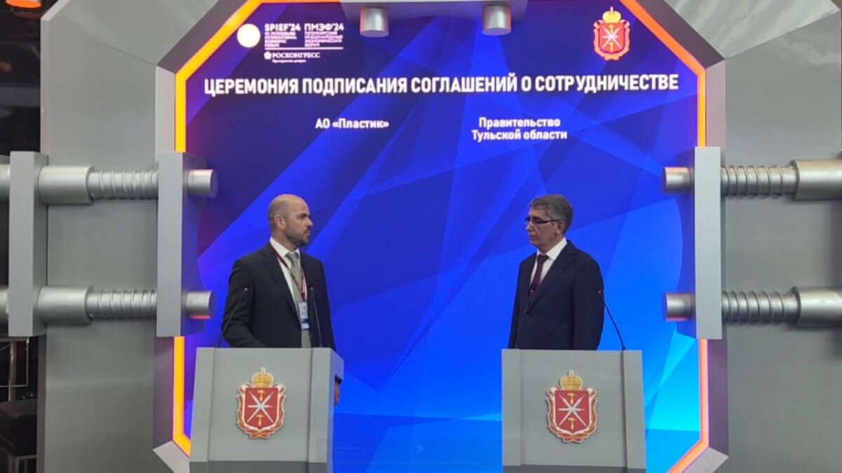 Сегодня в рамках XXVII Петербургского экономического форума врио губернатора Тульской области Дмитрий Миляев подписал соглашение о внедрении в регионе прогрессивных технологии. Второй стороной подписания выступил председатель Совета директоров АО «Пластик» Максим Кизимов. - Технопарк компании «Пластик» – яркий пример эффективного и развивающегося частного технопарка в Тульской области. За последние несколько лет площадка существенно нарастила промышленную территорию и инфраструктуру, привлекла новых резидентов, - сказал Дмитрий Миляев. Кизимов отметил, что "Пластик" сегодня успешно развивает промышленных технопарк. Согласно подписанному соглашению в Тульской области будет увеличено производственные силы региона и внедрены прогрессивные технологии. Объем инвестиции в проект развития технопарка составит около 5 миллиардов рублей. Также в области появится около 300 новых рабочих мест.