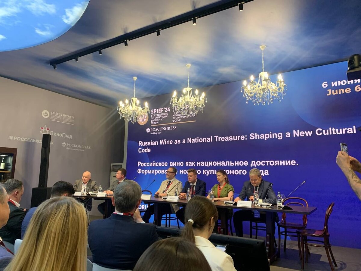 Там сессия российского вина началась. Дмитрий Киселёв говорит, что 51% россиян считают, что отечественное вино лучше импортного. впечатляет #пмэф2024