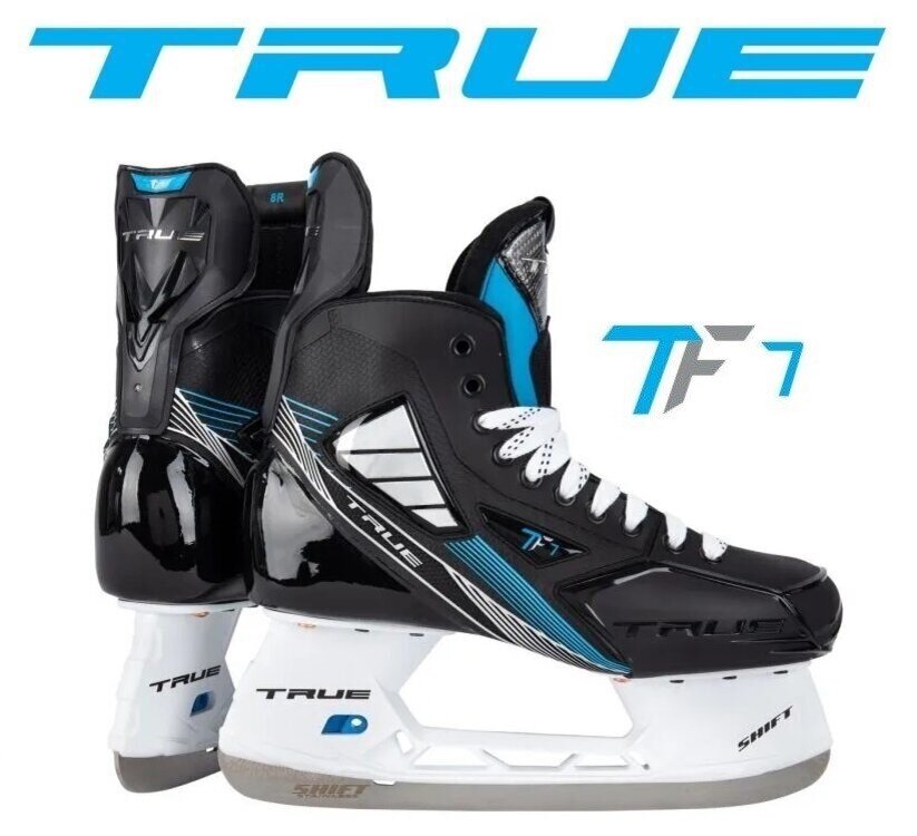 Коньки True TF7 весят 994 грамма, что делает их одними из самых лёгких профессиональных коньков на рынке. Лезвия коньков True Shift с быстросъёмными креплениями обеспечивают надёжную фиксацию и лёгкость замены.