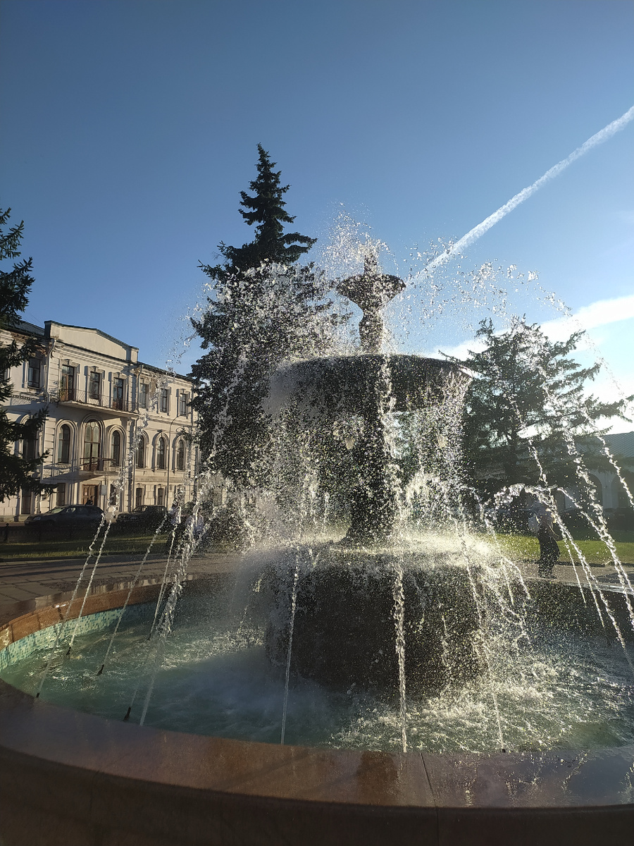 Пляшут на Руси от печки, а я приглашаю вкусно прогуляться от фонтана в центре города и по ул. Советской. Завернуть поесть тут можно буквально в каждом здании. А здания-то какие - красота, аутентичность, старина и история. В этой части я покажу несколько локаций, продолжение непременно последует. Потому что я внезапно осознала, что Кострома - мекка "обжорного" туризма, оказывается. Сразу предупреждаю: я почти не хожу в кафе и рестораны, предпочитаю спонтанные пикники, берег Волги, лес и припасы в корзинке. И ем всë подряд. Тот есть гастрономического разбора не ждите. Но вы спросили, я приняла это как знак судьбы и наугощалась кофе, чаем и пирожными по самое... Никакой рекламы, поэтому минимум конкретики. Впрочем, адресные планы и фото ценников и меню в наличии. Итак, сразу за фонтаном торговые ряды полностью заняты кафе и ресторанами. Притягательны столики на улице с шикарным растительным оформлением. Первые заведения просто показываю, внутрь не заходила: А вот в "Избушку" пер