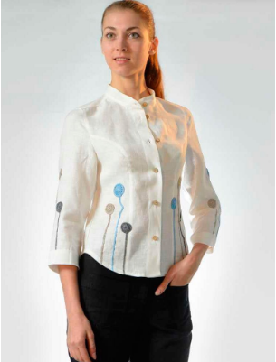 В блузке из 100% льна вам будет комфортно в самую жаркую погоду. Технологи научились не только отбеливать лен, но и создавать изящные рисунки и качественно окрашивать ткань в сочные цвета, которые не потеряют яркости при многочисленных стирках.