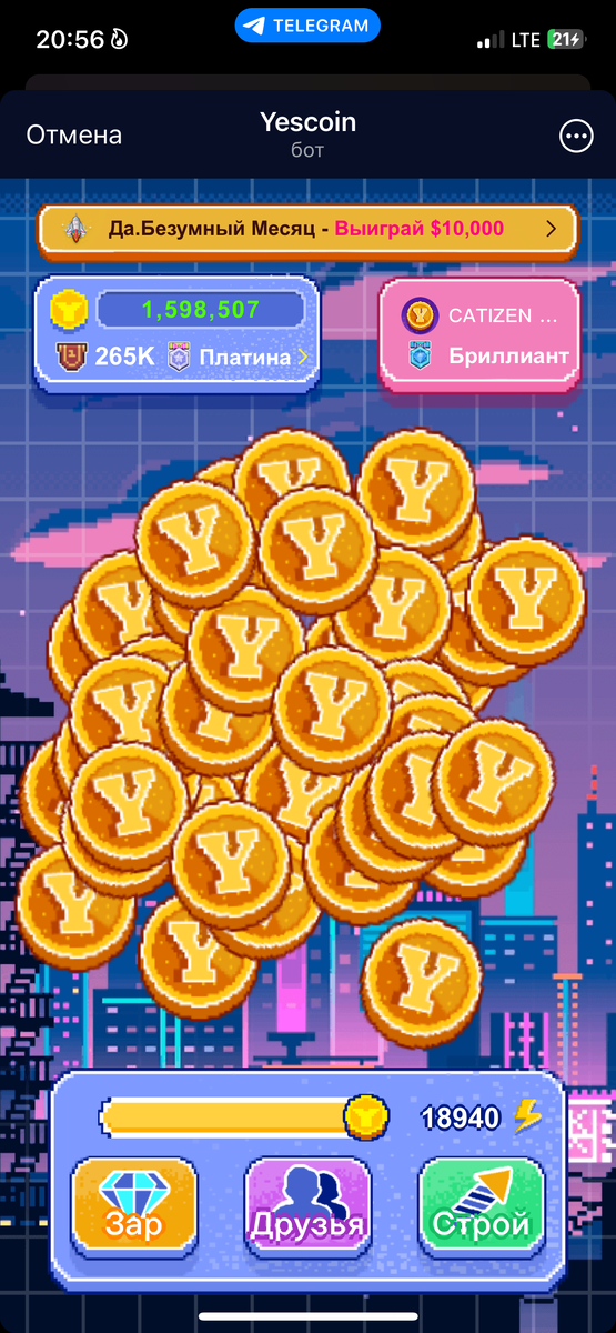Механика игры YesCoin. Чтобы начать играть запускаем бот в телеграм -YesCoin . Здесь вместо кликов по экрану надо водить пальцем по экрану и собирать монеты. Иногда появляются бусты в виде сундука, что дает нам увеличенное количество монет. В разделе Earn за выполнение заданий получаем дополнительные монеты. В разделе Frens можно скопировать ссылку и пригласить своих друзей, за них тоже получаем монеты. В разделе Boost прокачиваем майнер для получения более крупных наград, а также не забываем использовать бесплатные ежедневные бусты. Также в игре ввели домашнее животное, которое поможет вам автоматически получать монеты. Задача прокачивать аккаунт, подниматься в лигах. Подробности аирдропа будут позже. Кликер YesCoin Популярность Ноткоин пытаются повторить многие проекты и некоторым это удается. Сегодня рассмотрим три немного разные тапалки в телеграм, с одним названием YesCoin, но со схожими механиками. Все игры вышли в апреле этого года. Буквально на этой неделе две из них, с раз