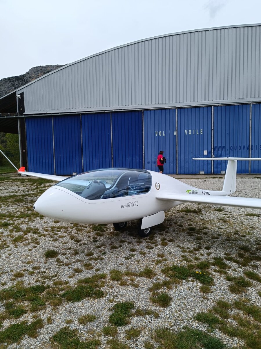 Толстожопый пипистель мне сначала не понравился. Потому что летать быстро не умеет. Быстрее 120 он уже не то что бы падает, но быстрее 150 уже не летит, скорость не держит, свечку не делает, чуть зевнул, уже 80, но потом... Потом мне понравилось, потом еще понравилось, потом еще больше понравилось, а потом еще больше) Сзади Гренобль Электромотор интересная штука. Хорошо работает.