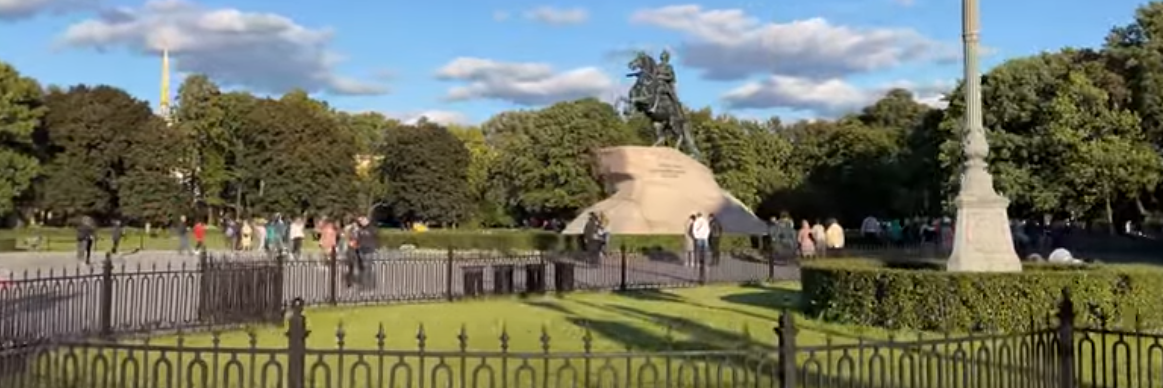 Доброе время суток! Наверное, невозможно представить себе Санкт-Петербург без посещения тех достопримечательностей, которые есть в этом городе. И, конечно же, стоит обязательно посетить такой памятник, как Медный всадник. Монумент «Медный всадник» украшает одну из центральных площадей города на Неве. Его высота 10 метров. Он представляет собой огромную скалу или по-другому Гром-камень, на котором на дыбы встает конь и топчет копытом ядовитую змею. Основная фигура этого монумента – Петр Первый. Император протягивает вперед правую руку, а по двум сторонам самого Гром-камня есть надписи: «Петру Первому от Екатерины Второй, 1782 год». Они сделаны на русском и латинском языках. Кстати, высота всего памятника более десяти метров. Теперь немного остановлюсь на истории создании этого памятника. Известно, что такое решение, как установить памятник Петру Первому, было принято Екатериной Великой. Она хотела это приурочить к столетию вступления на престол первого императора в России, а также отме