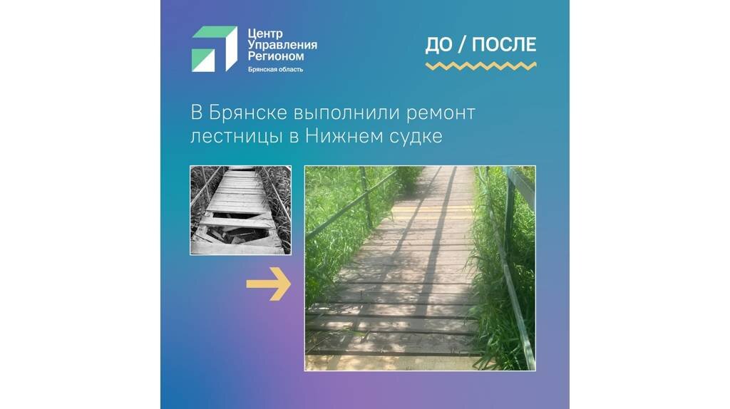 В конце мая в соцсетях опубликовали снимок разбитых мостков в овраге Нижний Судок в Брянске, по которым стало опасно передвигаться. В комментариях к публикации горожане начали возмущаться ситуацией, виня вандалов, а заодно безразличных к сохранению природы брянцев, которые бросают мусор. Информацию о проблеме специалисты Центра управления регионом, которые мониторят соцсети, направили в городскую администрацию. Рассмотрев обращение, власти адресовали его в дорожное управление, где должны реагировать на ситуацию с мостками в овраге. Через несколько дней профильные специалисты выехали на место и отремонтировали лестницу. Об этом сообщается в группе Центра управления регионом Брянской области. В Брянске отремонтировали лестницу в Нижнем Судке