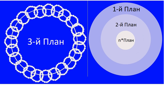 Когда мы рассматривали формирование планов материи, всех 49 из них, нам было сказано, что каждый нижний план является совокупностью кластеров из атомов с плана над ним. Каждый такой кластер, в свою очередь, всегда состоит из 49 атомов следующего вышестоящего плана.