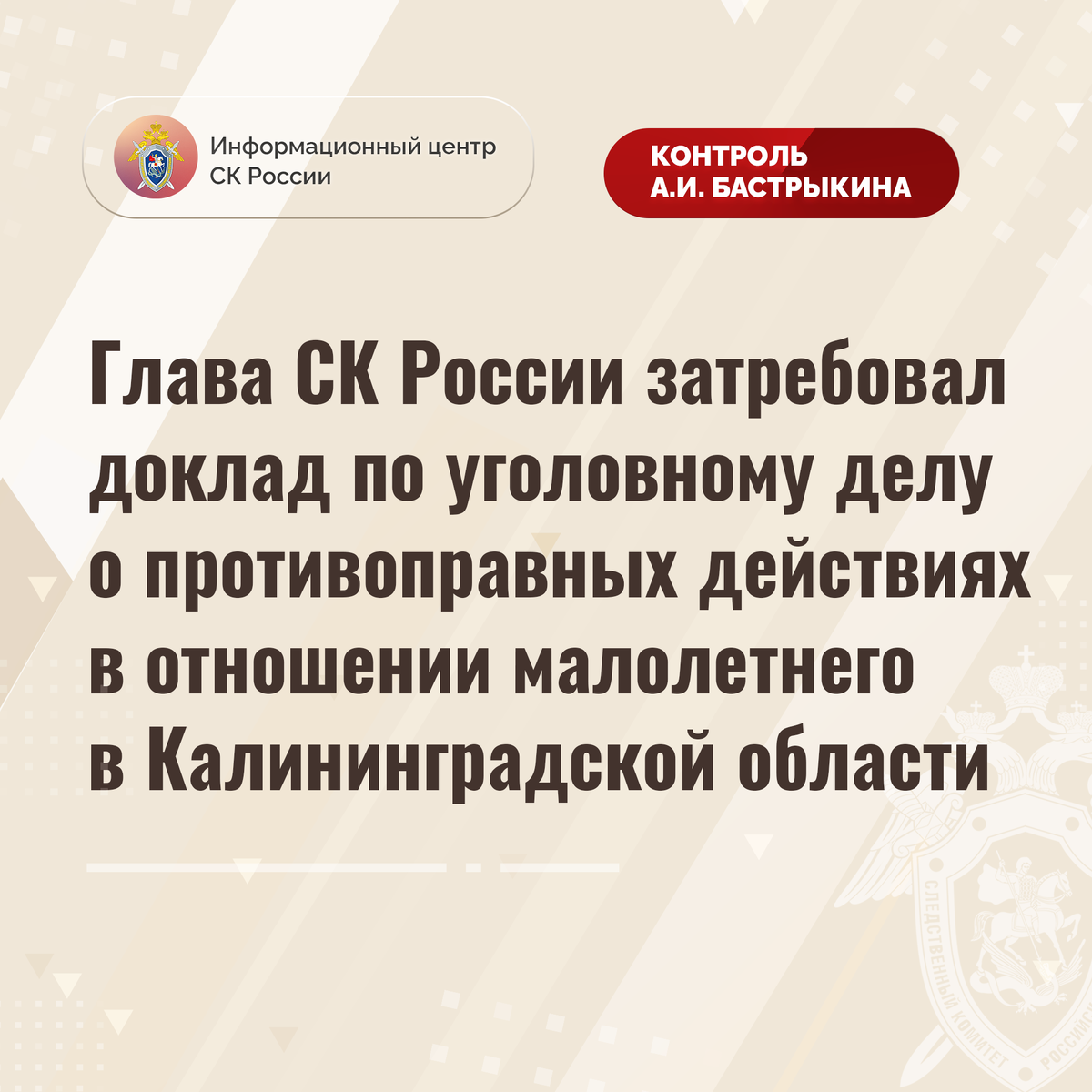#СледственныйКомитет #СКРоссии #СКР #ИЦСКР #Информационныйцентр #АлександрБастрыкин #ПредседательСКР #КонтрольПредседателяСКР #КомментарийКонтроль #КалининградскаяОбласть