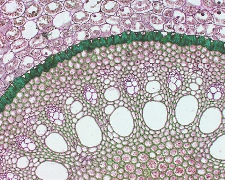 Окраска срезов растений йодной зеленью и кислым фуксином