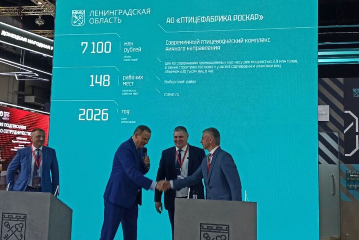 Губернатор Ленинградской области Александр Дрозденко подписал на ПМЭФ-2024 соглашения с крупнейшими птицефабриками региона: “Синявинская”и “Роскар”.