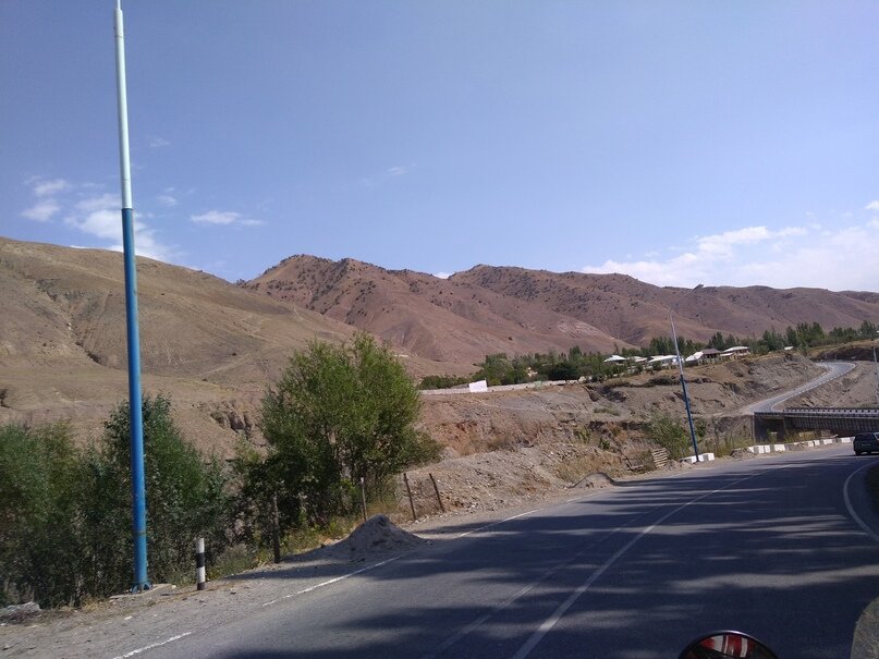 Все меняется после очередного подъема с тоннелем, взгляду открывается река Вахш, переходящая в Нурекское водохранилище. Что ж, если даже Памирский тракт останется непройденным, ради вида бесконечно синей воды, обрамленной камнями гор, сюда определенно стоило приехать. Но вскоре дорога выравнивается и бешеный восторг сменяется жарой, жаждой и среднего качества асфальтом. Заехав в магазинчик за запасом замороженной минералки (очень удобно, кстати, привязал ледышку к моту, а на следующей остановке у тебя есть приятная прохладная водичка) и банкой энергетика, попали в окружение толпы школьников. Дети вели себя на удивление тихо и даже слегка торжественно, молча смотрели на мот с безопасного расстояния, а в ответ на мое прощание дружно прижали руки к сердцам и слегка поклонились.
