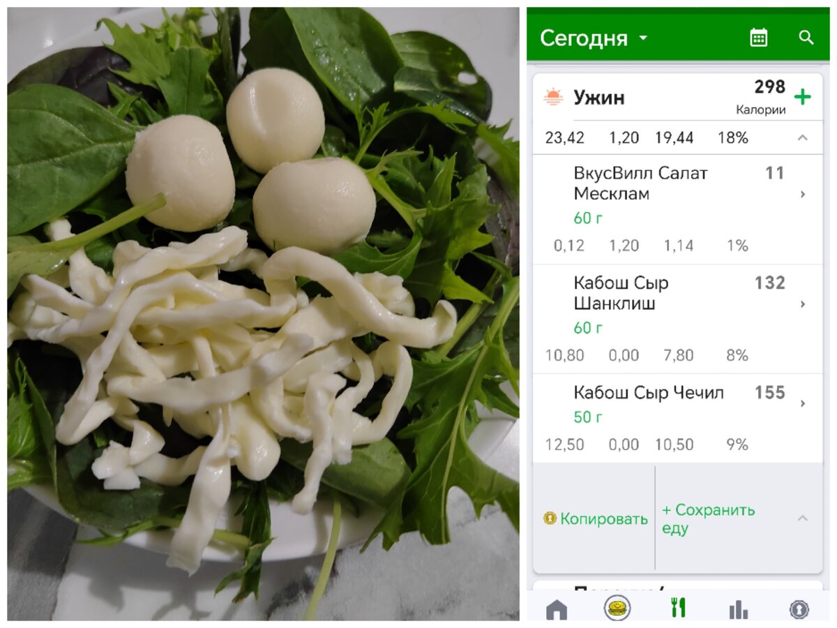 Сегодня, на ужин салат Месклан 60 гр, сыр шанклиш 60 гр, сыр чечил 50 гр.