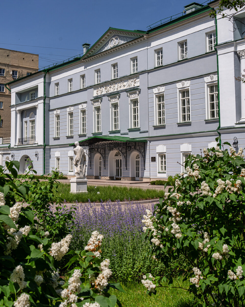 Перед вами усадьба, главный дом которой Матвей Казаков включил в свои знаменитые альбомы самых красивых московских фасадов. Это усадьба Долгоруковых - Бобринских на Малой Никитской, 12. Владение древнее, первое упоминание о продаже относится к началу 18 века. В 1795 году усадьбу купил Андрей Михайлович Долгоруков. При нем на основе старых каменных палат был построен главный усадебный дом, так понравившийся Казакову. История не сохранила имя зодчего, спроектировавшего этот шедевр. Во время пожара 1812 года усадьба сильно пострадала, но затем была восстановлена в прежних формах. В 1839 году на долгие 50 лет хозяйкой владения стала графиня Софья Прокофьевна Бобринская. При ней внутренние помещения получили роскошную отделку. Потолки в 1848 году были расписаны живописцем Джузеппе Артари. Это он расписывал купол Петровского путевого дворца в технике гризайль. В 1888 году дом унаследовал граф Алексей Бобринский. Его друг Дмитрий Шереметев оставил воспоминания об усадьбе с описанием инт