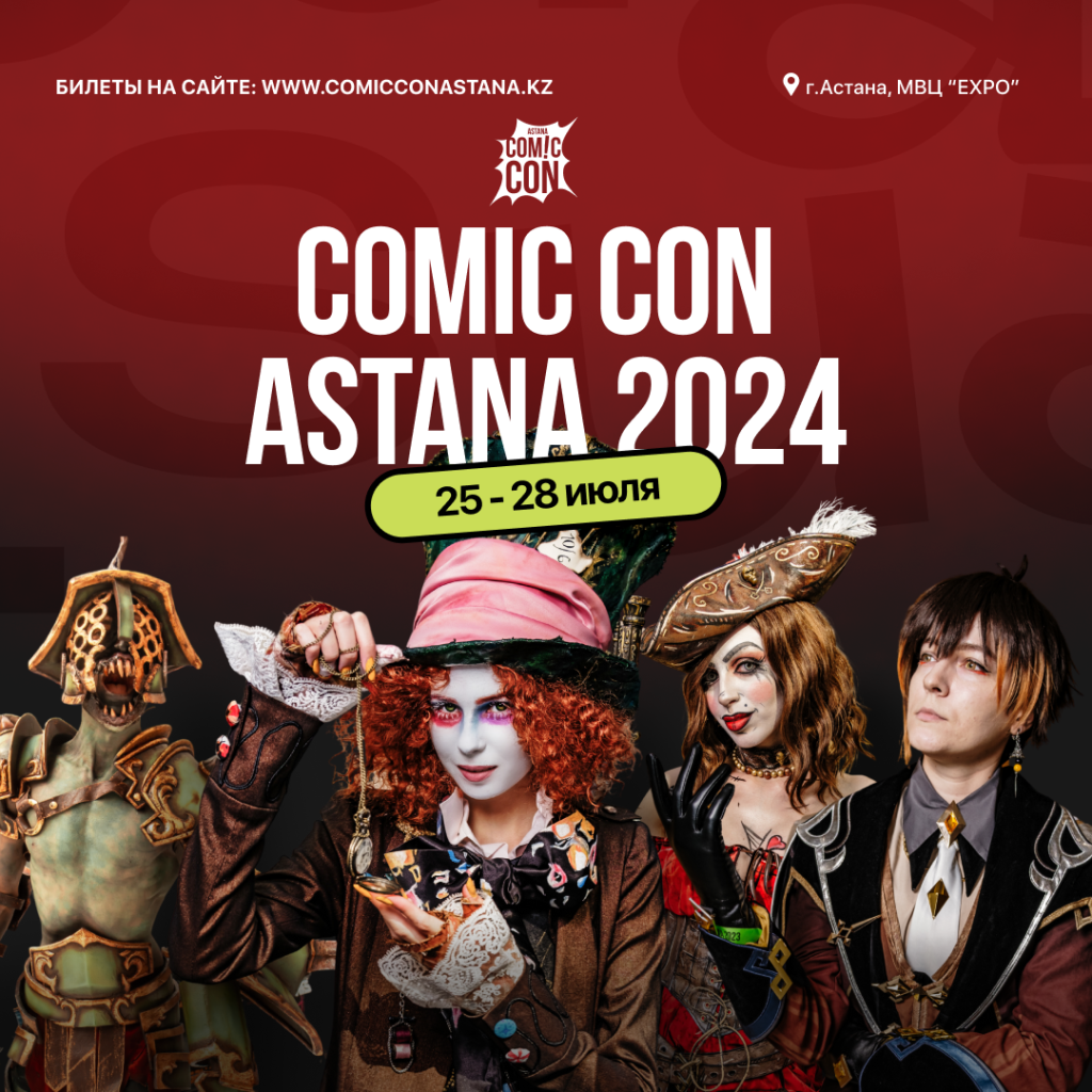 Comic Con Astana — фестиваль, посвященный индустрии комиксов, кинематографа, видеоигр, аниме и иных направлений современной популярной культуры. В 2024 году в масштабном мероприятии вновь примут участие международные студии, продюсеры, популярные блогеры и профессиональные косплей-артисты. Программа фестиваля будет включать встречи и автограф-сессии, премьеры, спецпоказы и презентации, косплей-шоу, аллею комиксов, выступления музыкальных исполнителей и танцевальных коллективов. Мировые студии представят на площадке фестиваля собственные интерактивно-развлекательные стенды. Традиционным элементом шоу-программы фестиваля станет конкурс косплея международного масштаба с призовым фондом 12 000 000 тенге. В составе членов жюри косплей-конкурса — талантливый косплеер из Дании и мастер по созданию костюмов Trine, многократный победитель международных чемпионатов, косплеер из Франции Cinderys. В рамках Comic Con Astana-2024 вновь ожидается участие голливудских знаменитостей. Так, в 2019 году х