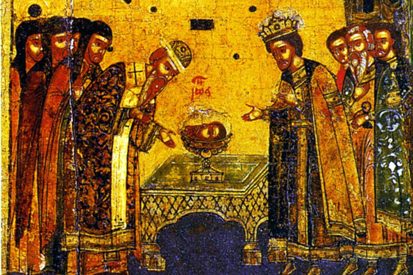 Прмц. Елены (1938). Прмч. Тавриона (1939). Третье обретение главы Предтечи и Крестителя Господня Иоанна Третье обретение честной главы святого Пророка, Предтечи и Крестителя Господня Иоанна было около 850 года. Во время волнений в Константинополе в связи с ссылкой святителя Иоанна Златоуста (память 13 ноября) глава святого Иоанна Предтечи была унесена в город Емесу. Оттуда во время набегов сарацин она была перенесена (около 810 - 820 гг.) в Команы и там, в период иконоборческих гонений, была скрыта в земле. Когда иконопочитание было восстановлено, патриарху Игнатию (847 - 857) во время ночной молитвы было указано в видении место, где скрыта глава святого Иоанна Предтечи. Первосвятитель сообщил об этом императору, который послал посольство в Команы, и там глава была в третий раз обретена, в указанном патриархом месте, около 850 года.