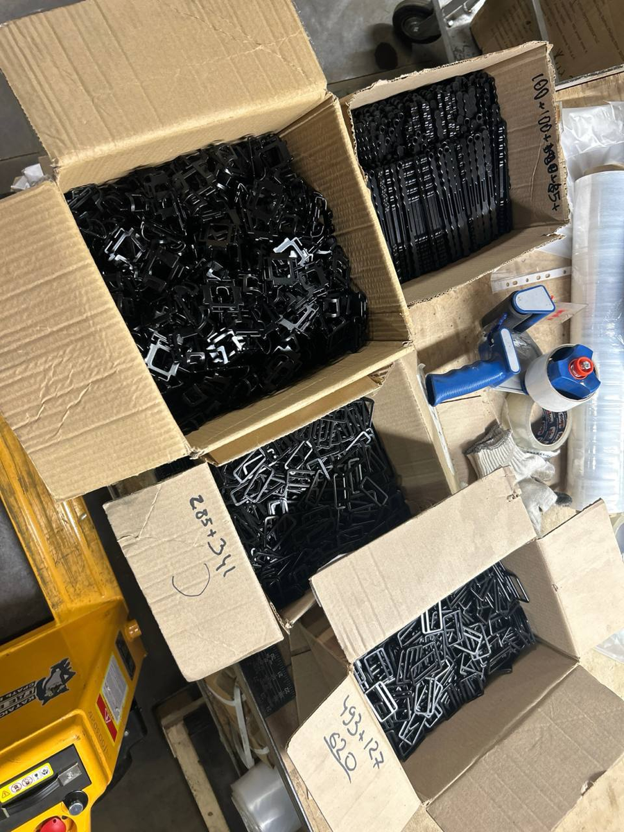 Пластиковая фурнитура турникетов была изготовлена на 3Д принтере. Волонтеры в специально оборудованном цехе соединят ее с текстильными элементами, и получившиеся турникеты можно будет отправлять на фронт.