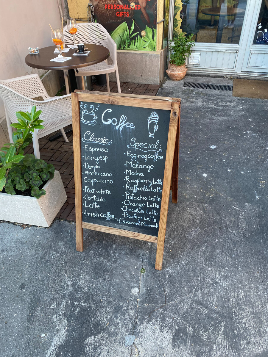 После подбора линз муж пригласил меня на кофе в кафе, в котором мы еще никогда не были. Находится оно в центре города на стороне Буды - Batthyány tér 2. Мы стараемся ходить в кафешки, в которых предлагаются интересные вкусы, а не скучная классика. Я в принципе не огромный любитель кофе, мне нравится только аромат, а от вкуса я не балдею, поэтому я только соглашаюсь на кофе с добавками.