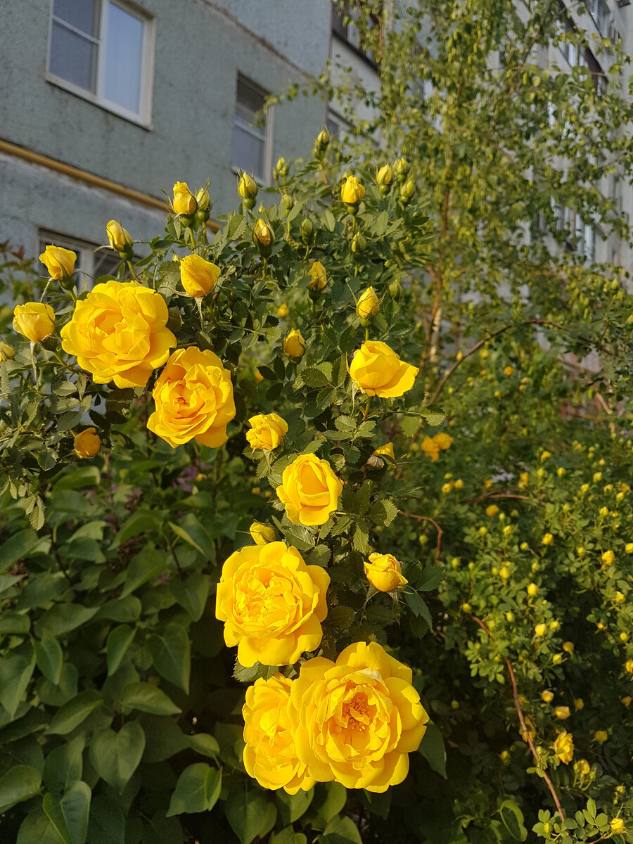 Доброго времени суток всем кто попал к нам на страничку! Сегодня ездили к бабушке на другой конец города, и решили пройтись по местным палисадникам, посмотреть что растет у других людей. Кстати наши дубки, которые мы посадили в самый первый год, попали к нам как раз от владелицы этого прекрасного палисадника в подарок, что называется на новоселье😊 Нам очень нравится ее труд, у нее высажено много разных красивых растений, мы как то в этом плане больше ударились в розы, а тут, в прочем далее сами все увидите. Кстати на тему роз, в прошлом месяце у нее цвела вот такая красавица: Название мы не знаем, но то что это очень популярная роза у нас в городе, это факт. Но у себя мы высаживать ее не будем, т.к. цветет она один раз в мае и все, далее это шиповник можно сказать😊 Да-да мы знаем что сейчас вроде как запретили использовать покрышки для клумб, но вот красиво же. Абсолютно не понимаю в чем разница где они будут гнить, и уж лучше пускай визуально приносят пользу. У нас кстати в соседни