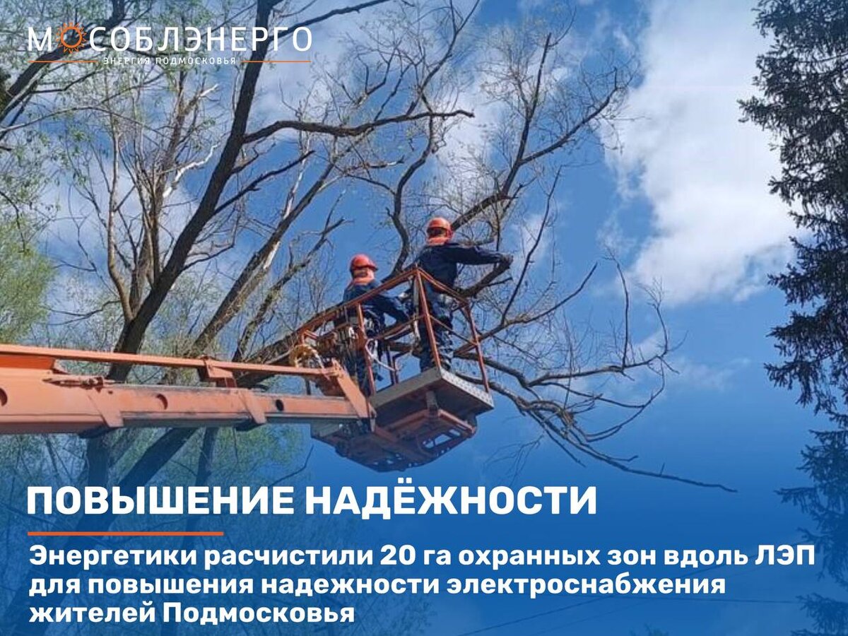 Работники АО «Мособлэнерго» расчистили 20 га охранных зон вдоль трасс ЛЭП по программе повышения надежности электроснабжения потребителей Московской области. Мероприятия по расчистке трасс воздушных линий электропередачи проводятся с марта текущего года и на сегодняшний день выполнены на 89%.